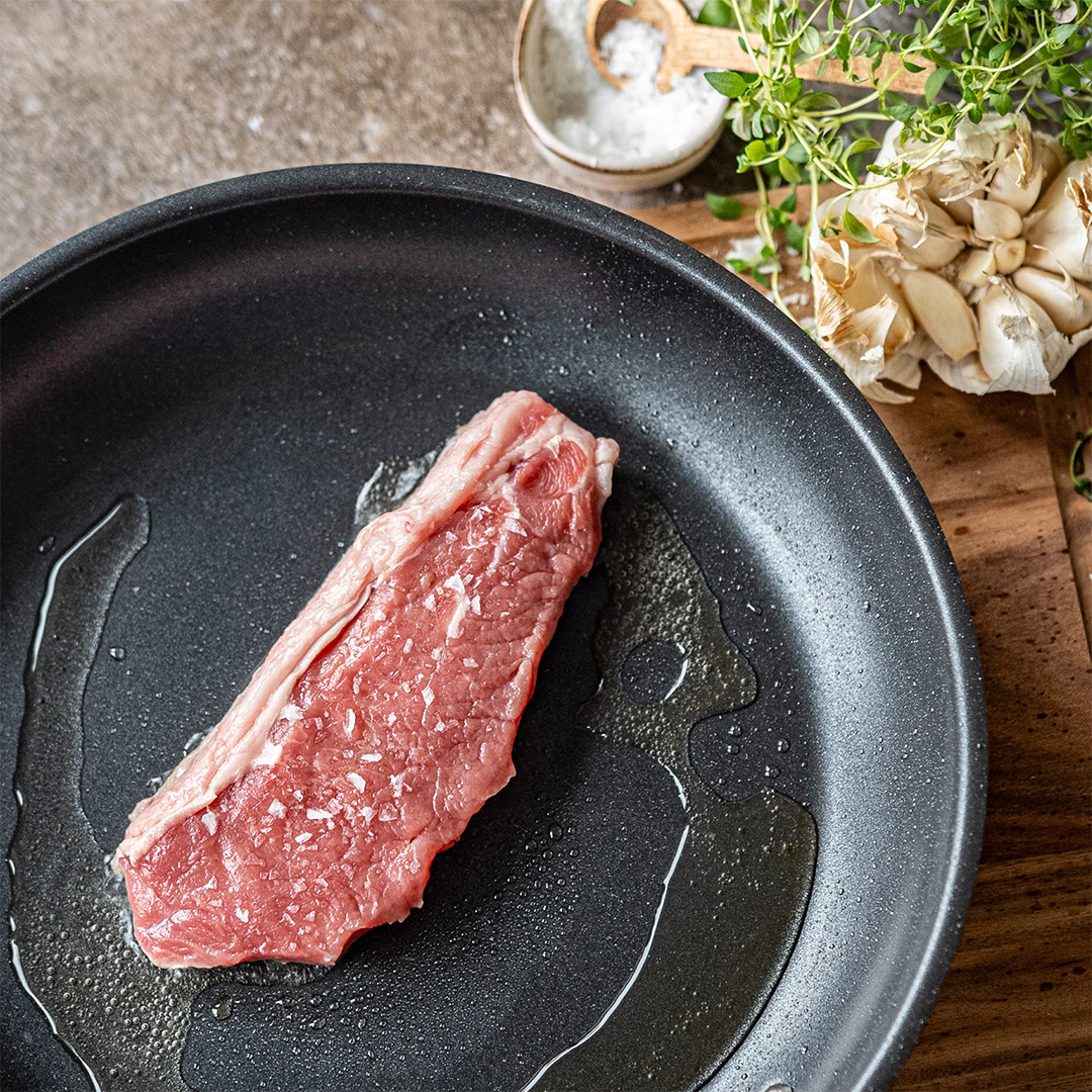 Stek kjøttet i 2–3 minutter på hver side for medium.